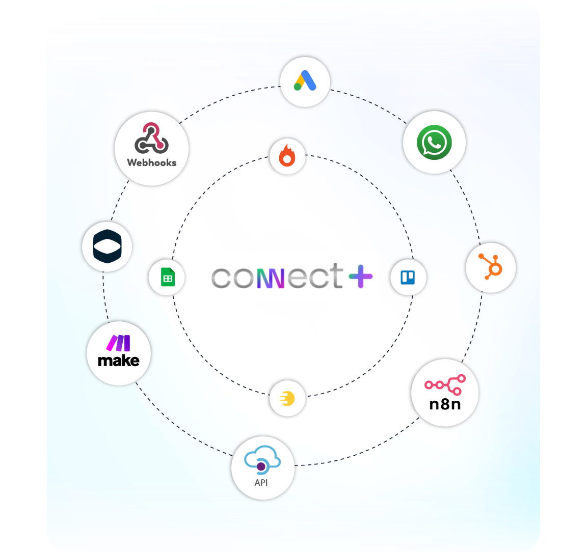 O n8n oferece centenas de integrações para potencializar o uso da Connect+.